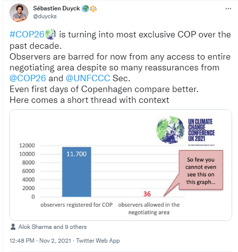“The most important conversations are happening outside of COP26, both in the streets and other events and this conversation are happening between scientists, professionals, activists and organizers across the globe. Yet all the policies that can lead to actual policy changes and financial contributions are happening behind closed doors…” – Alaina Wood.