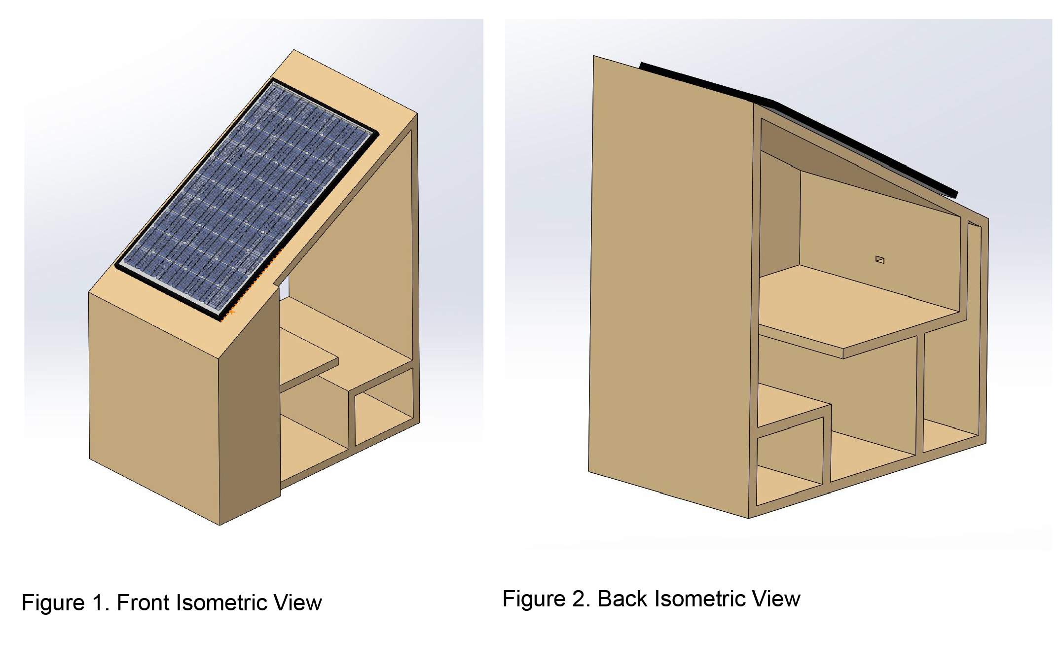 The Hub will be constructed primarily out of cedar wood framing, one solar panel, and a sealed compartment for all electronic components. The battery will be insulated at the front of the hub and will be used to charge the devices via an outlet and to power LED lights. The interior of the hub will have a built-in bench and table for users to easily sit inside. It will not be operational in the winter to maintain the longevity of the battery and will be placed (not mounted) on concrete.