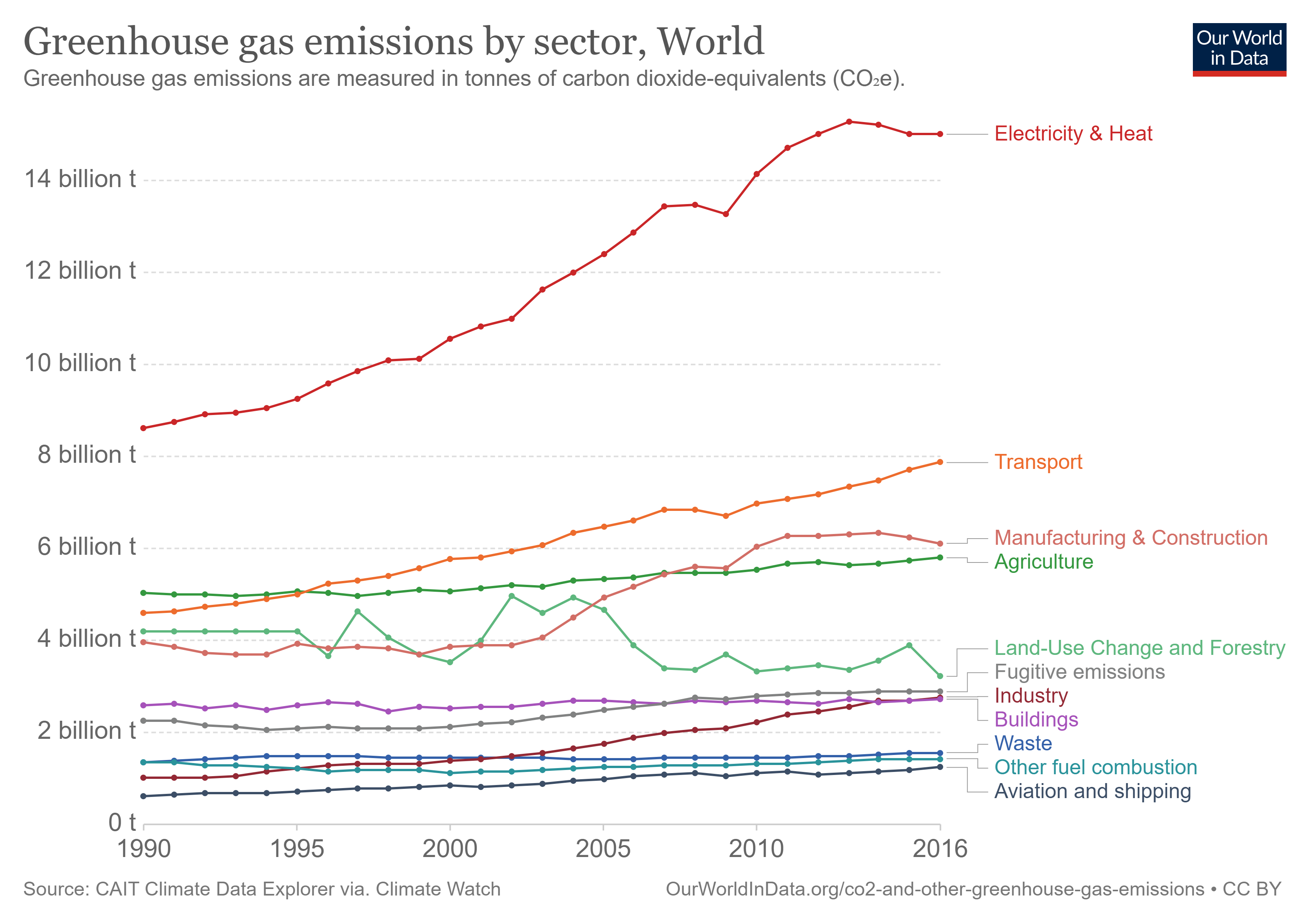 This data is published by country and sector from the CAIT Climate Data Explorer, and downloaded from the Climate Watch Portal. https://www.climatewatchdata.org/data-explorer/historical-emissions