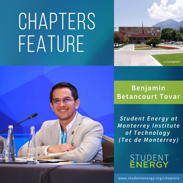 Meet the former president of the Student Energy Chapter at Monterrey Institute of Technology (Tec de Monterrey) – Benjamin Betancourt Tovar! He was president of the Chapter from August 2022 to July 2023. Currently, he is studying Nanotechnology Engineering at his University in Monterrey, Mexico.