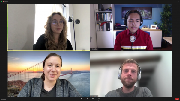 Clockwise from top left: Arsenii Kirgizov-Barskii, Paola Flores Carvajal, Shakti Ramkumar (Moderator)