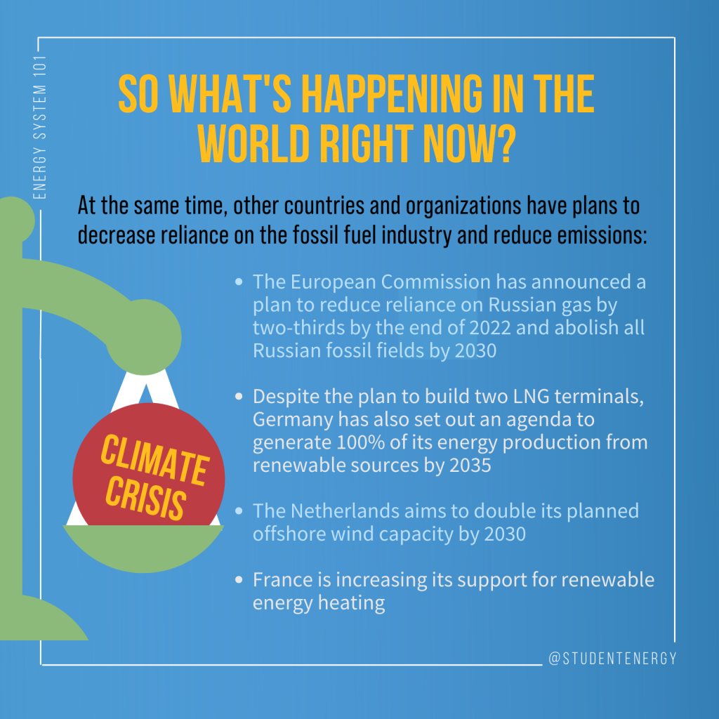 Climate scientists and activists are calling the current global crisis an opportunity to ignite true reform within the energy sector, and push back against increased investments in fossil fuels to stay within the 1.5°C limit set to mitigate catastrophic climate consequences. With Russia being the world’s second top producer of crude oil and supplier of approximately ⅓ of Europe’s oil, European governments have been prompted to reappraise their energy supplies, and consider clean energy sources and increased efficiency to decrease dependence on fossil fuels for environmental and geopolitical reasons